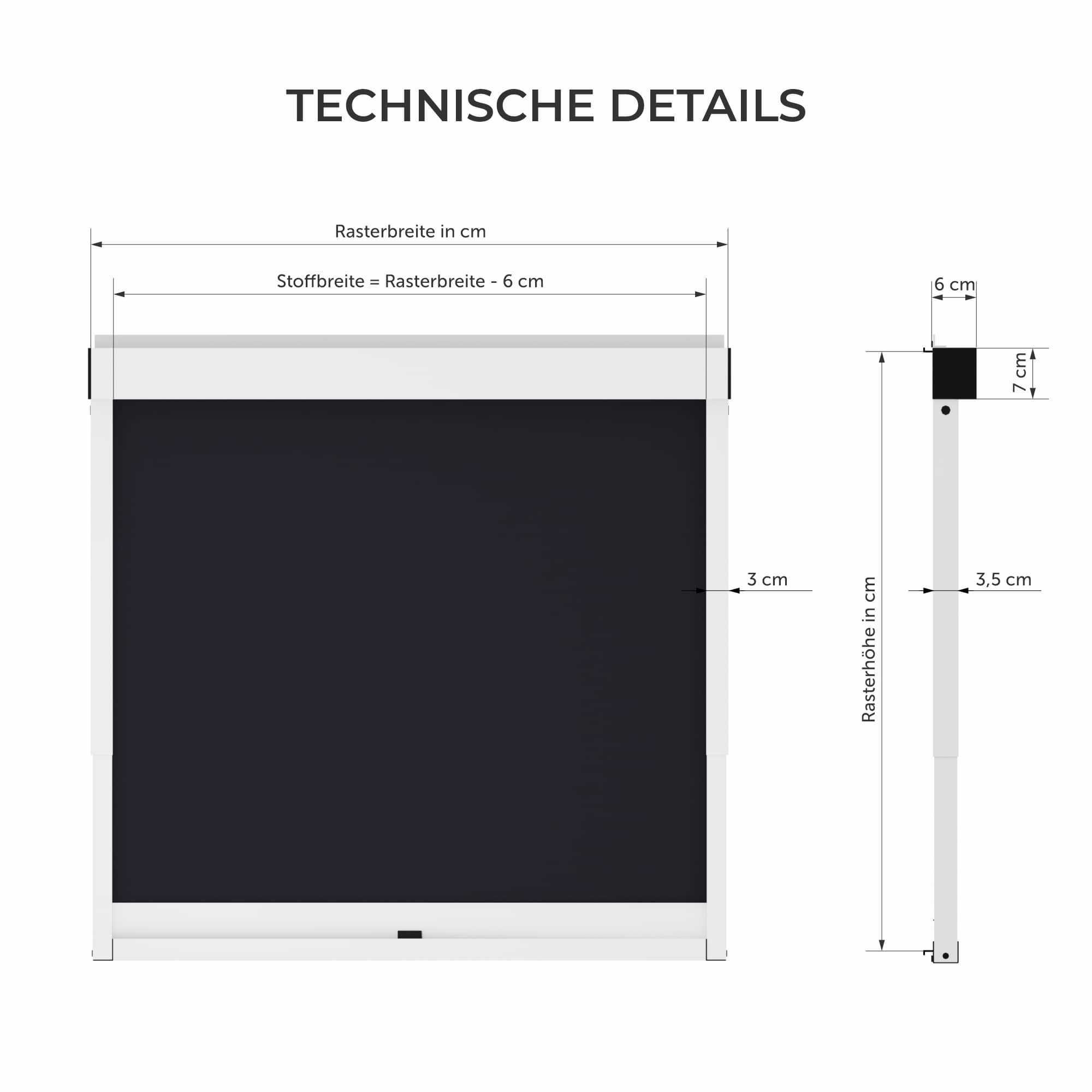 Nuestras cortinas enrollables exteriores CLIP'N'SHADE están disponibles en diferentes anchuras cada 10 cm. Gracias a los anchos de rejilla, podemos ofrecer un precio atractivo para nuestros estores exteriores para ventanas y garantizar una entrega rápida.