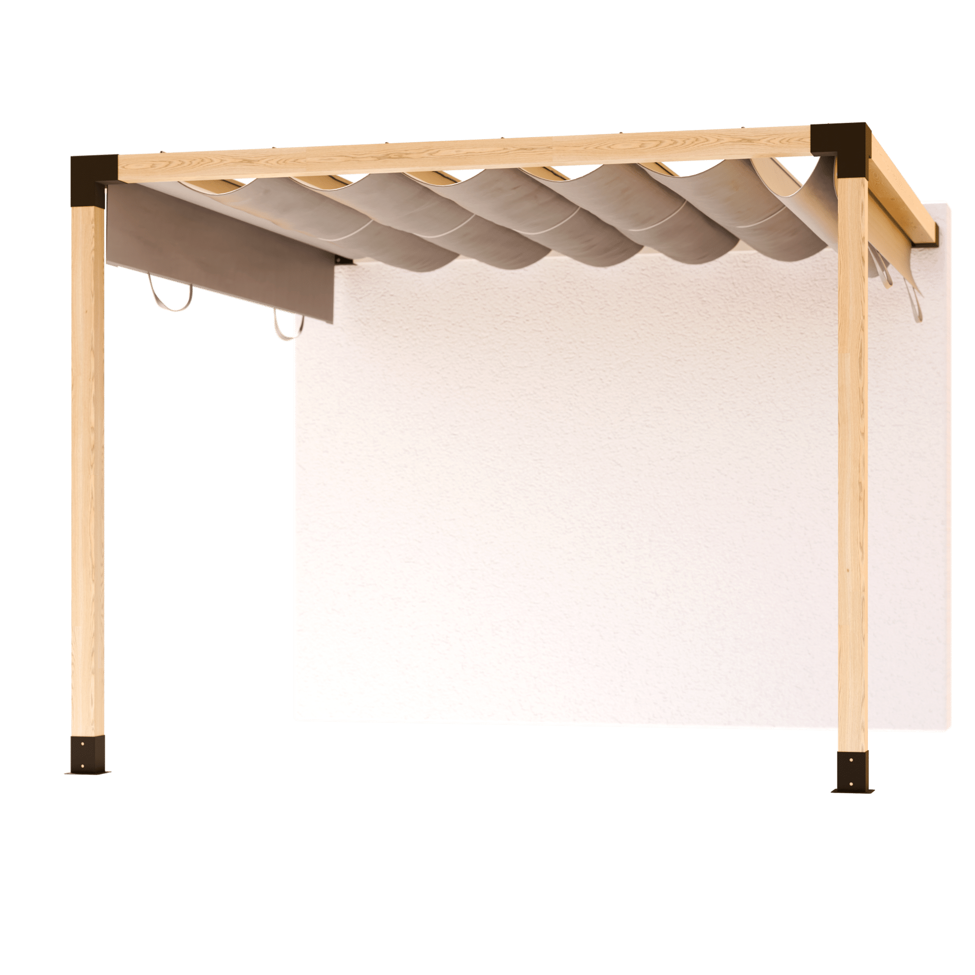 Transforme su patio en un elegante refugio con nuestro completo kit de pérgola de madera con conexión unilateral a la pared. Ya sea como tejado de terraza, pérgola o cobertizo para coches, este conjunto es la base perfecta para su proyecto de construcción personalizado junto a la casa.