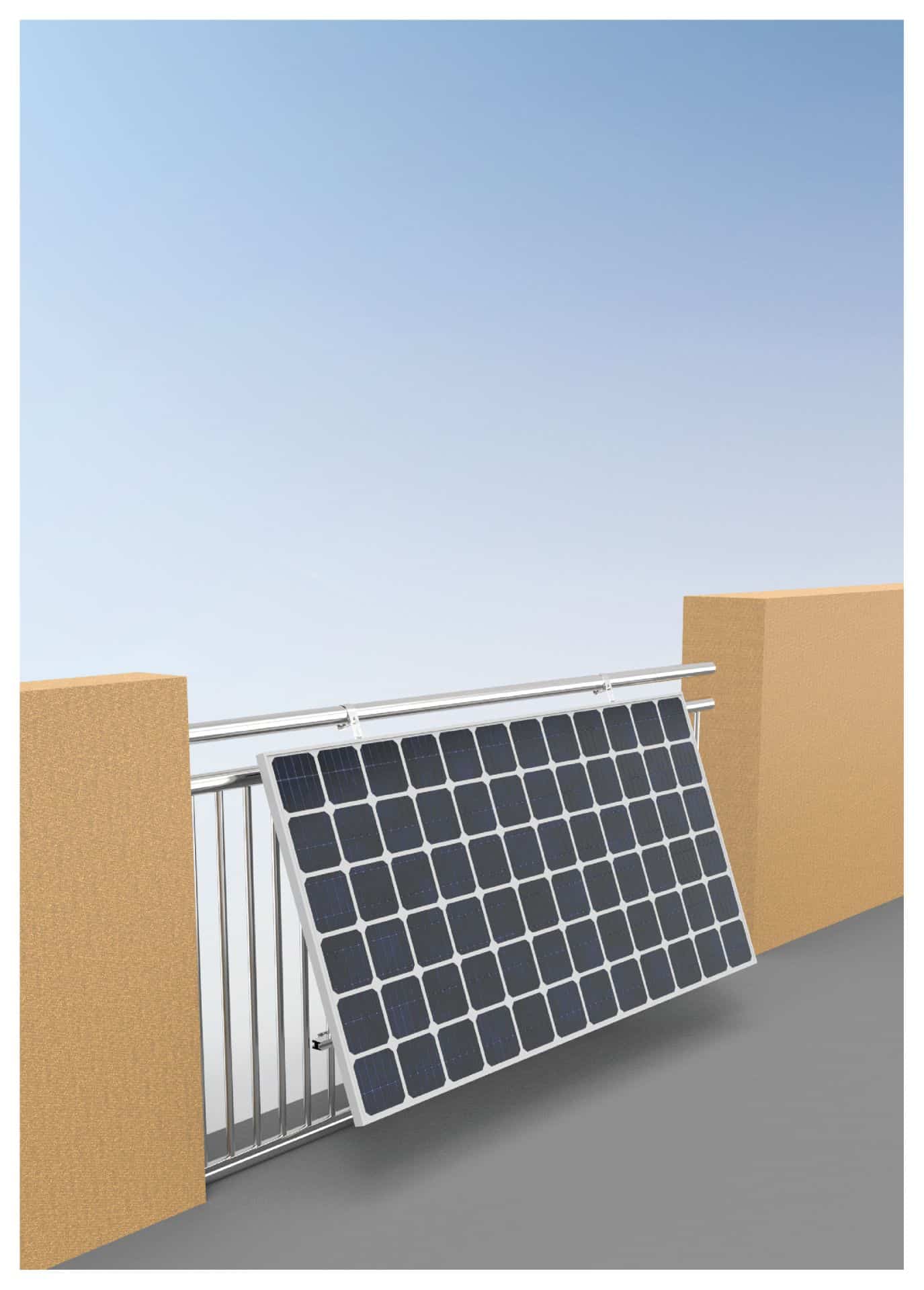 Nuestro set de montaje de centrales eléctricas para barandillas de balcón le ofrece la solución ideal para fijar los módulos solares de forma segura y cómoda a las barandillas de su balcón.