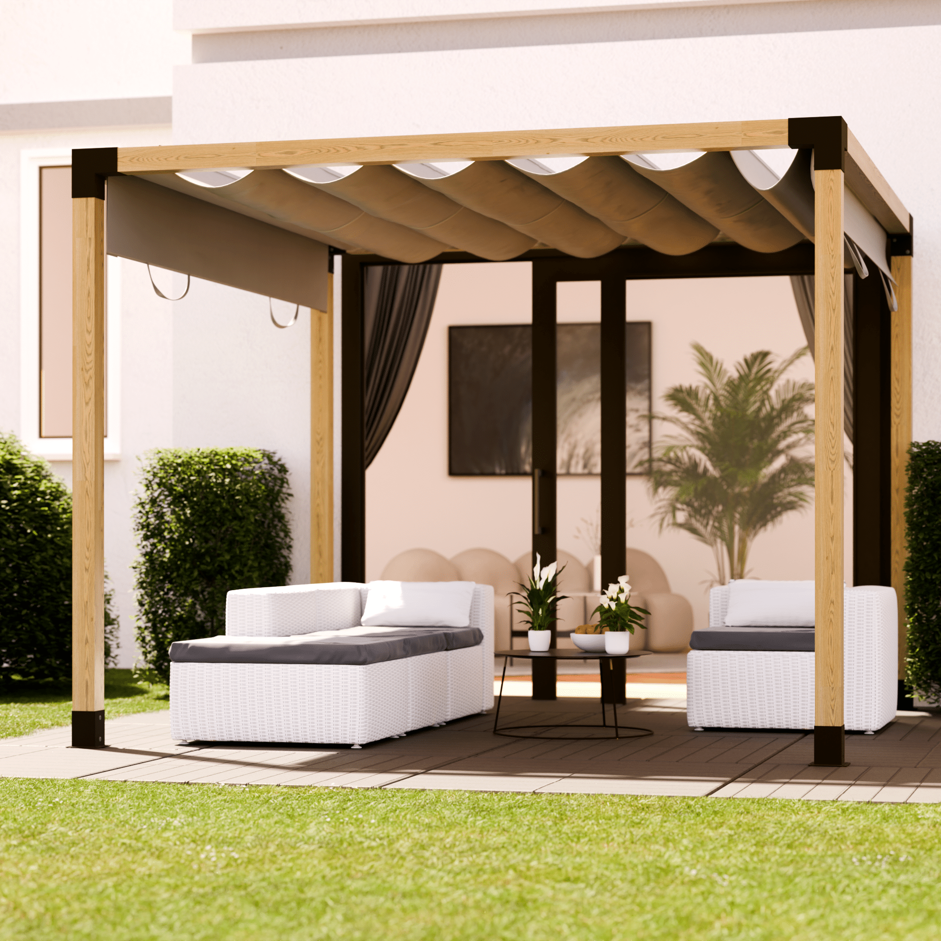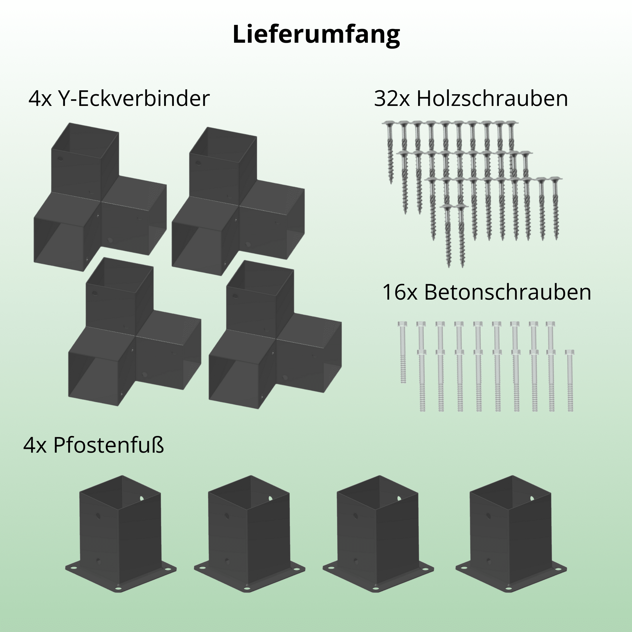 Transforme su jardín en un elegante oasis de bienestar con nuestro completo kit de pérgola de madera. Ya sea como cenador, pérgola o carport, este conjunto es la base ideal para su proyecto de construcción personalizado.