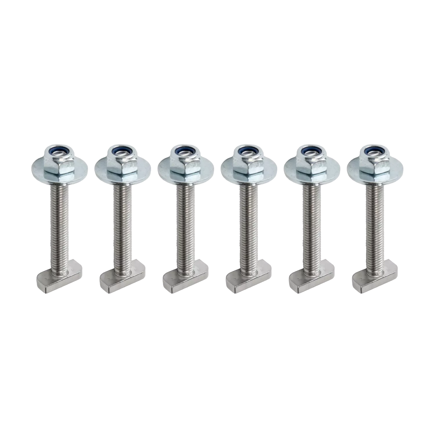 - 6 x tornillos de cabeza de martillo (M8 x 60 mm acero inoxidable V2A) para conectar los ganchos de techo al riel de aluminio